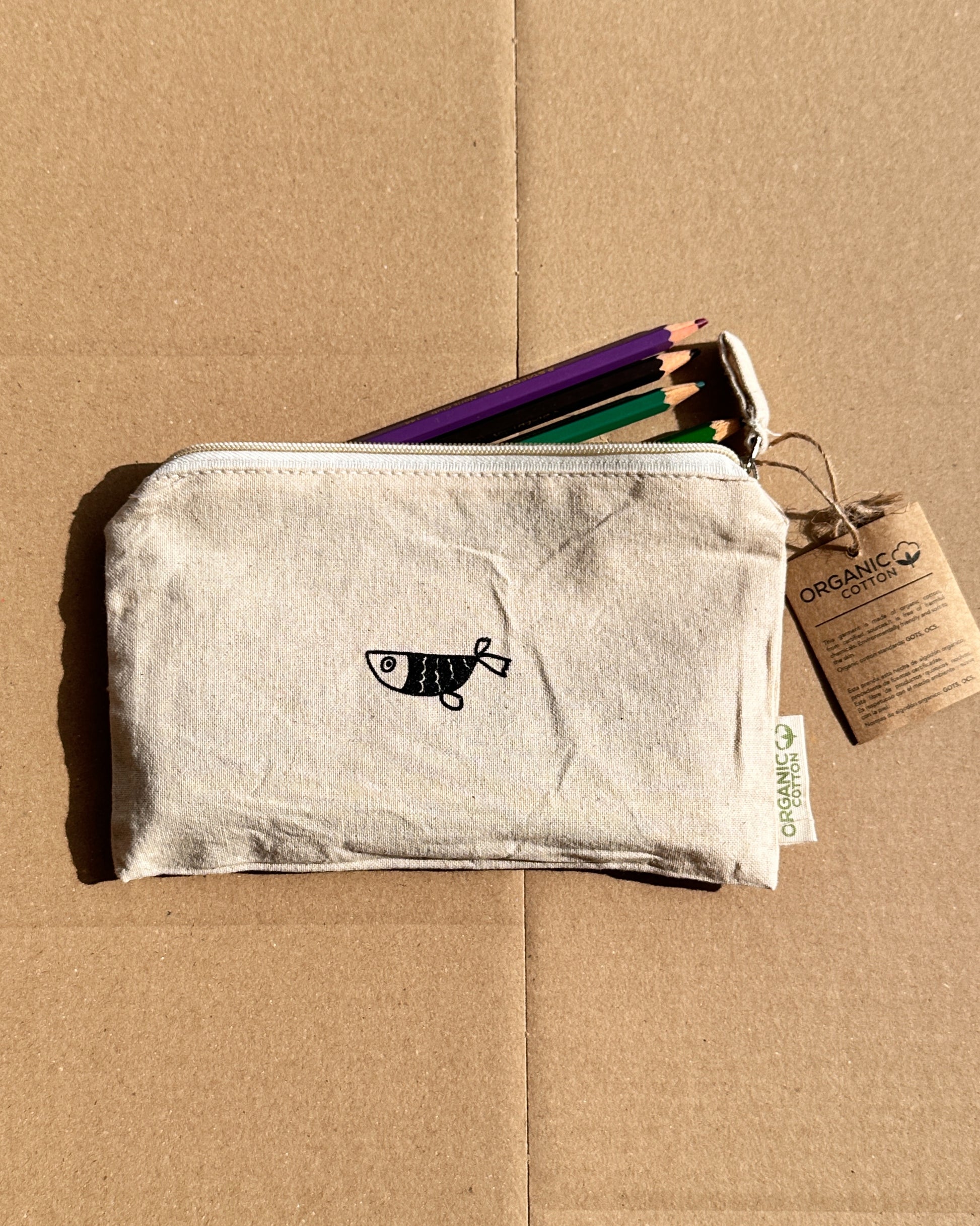 Bolsita de algodón orgánico con cremallera y logo Attés en color natural.